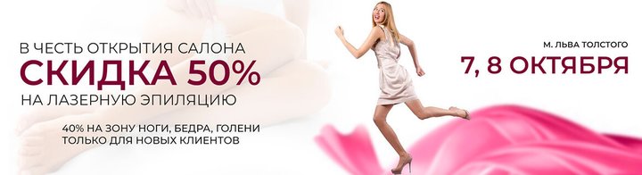 Спешим вас порадовать хорошими новостями. Теперь нас можно найти и по адресу ул. Бассейная, 5Б. В честь нашего открытия, действует акция – скидка 50% на лазерную эпиляцию! Скорее записывайтесь! Предложение актуально 7 и 8 октября 2018.